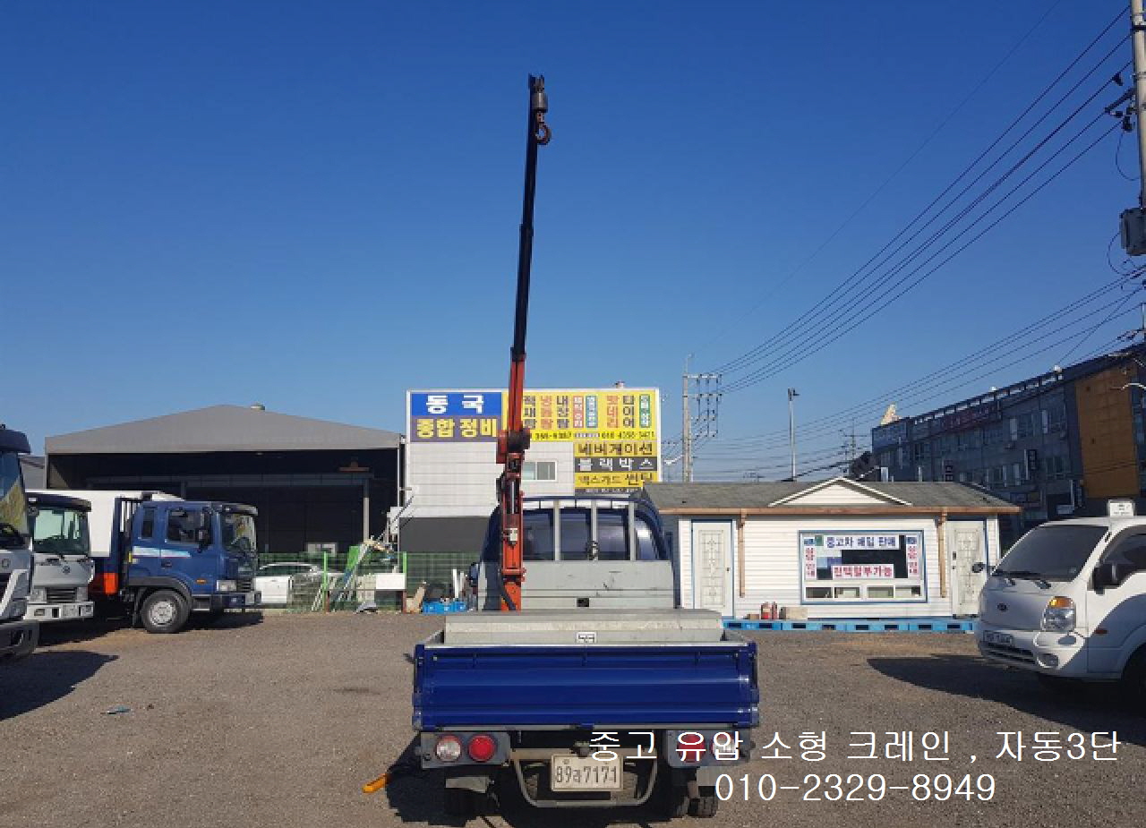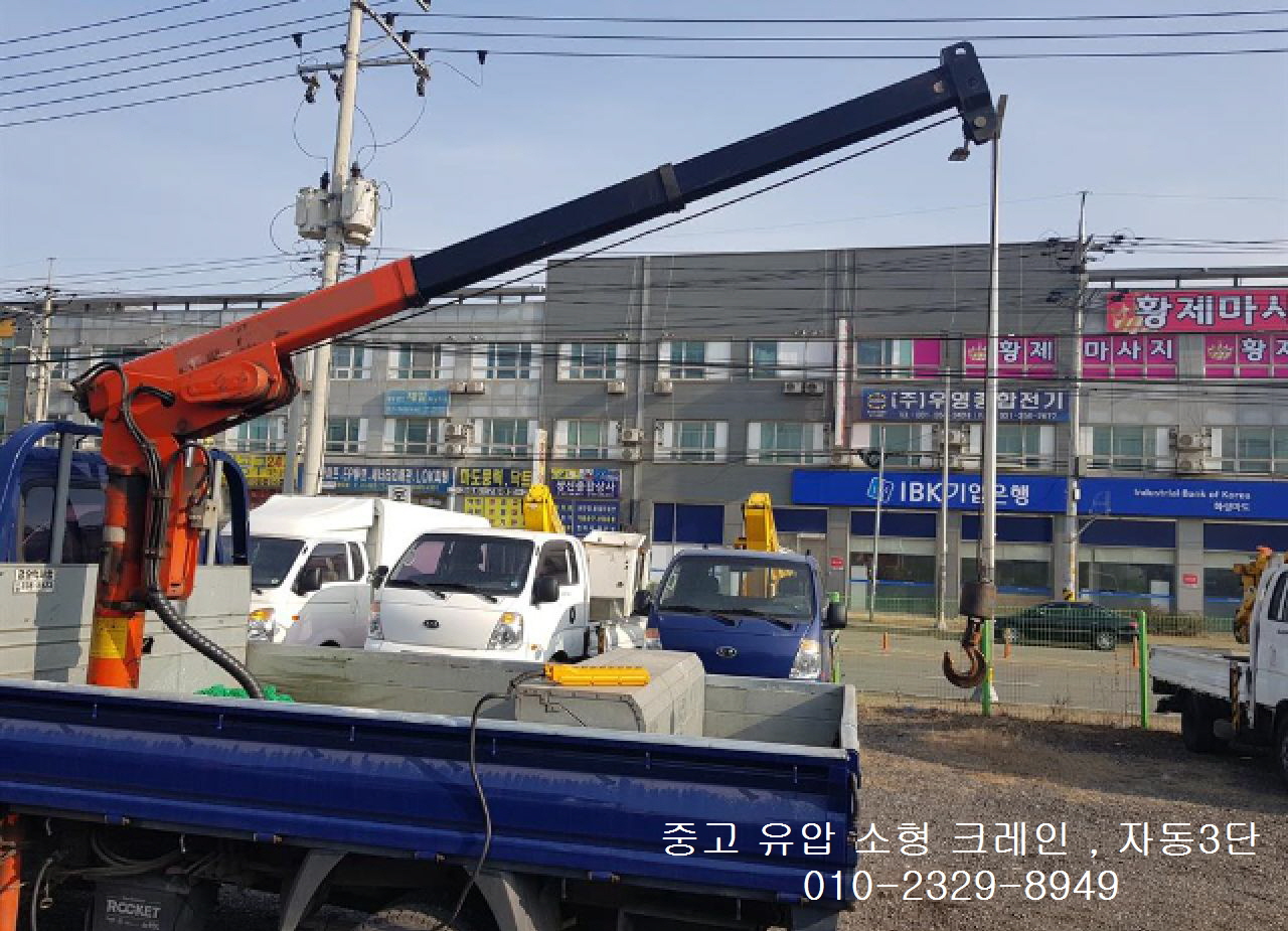 중고 1톤 소형 크레인 자동 3단 붐 입니다.